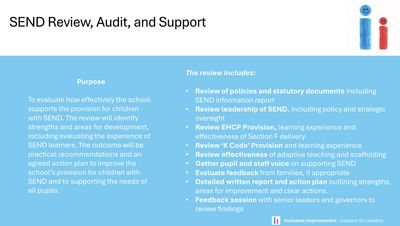 • Review leadership of SEND, including policy and strategic oversight.