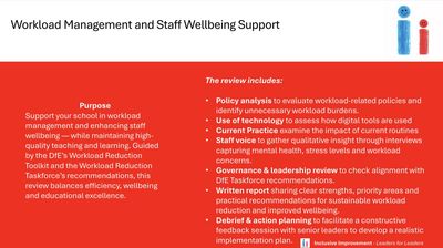 • Written report sharing clear strengths, priority areas and practical recommendations for sustainable workload reduction and improved wellbeing.